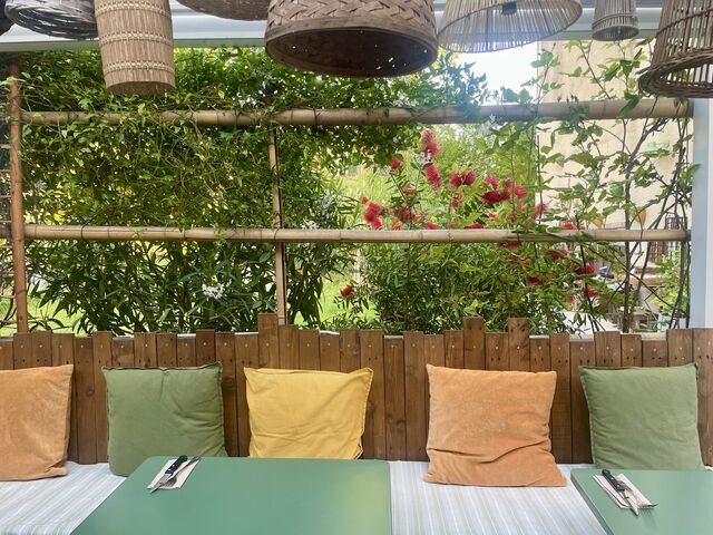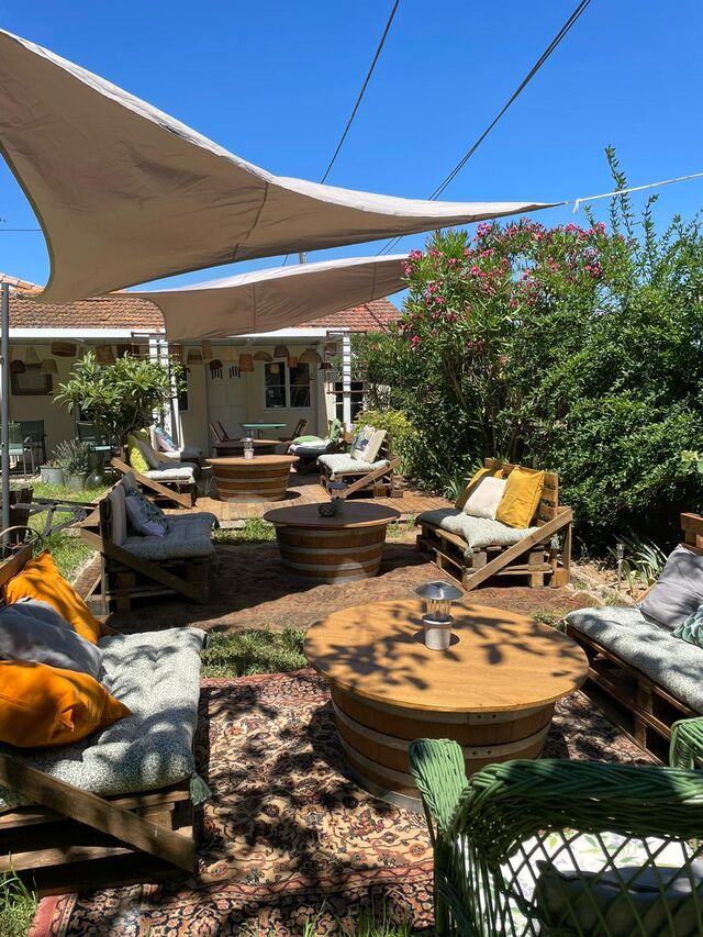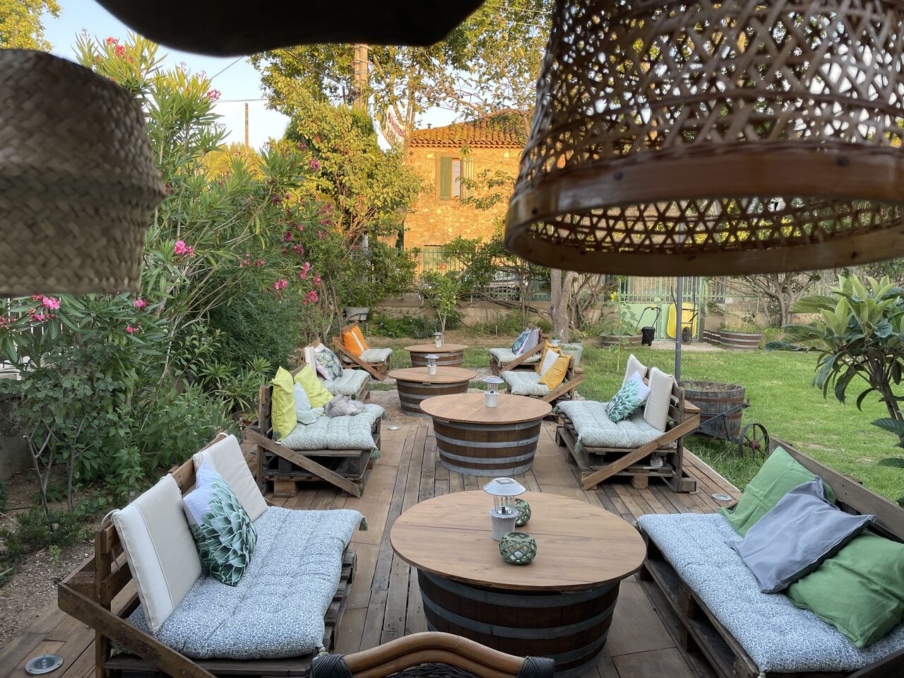 Choisissez votre ambiance : une terrasse ombragée sous la pergola en journée ou un espace cosy avec banquettes éclairé par des guirlandes guinguettes à la nuit tombée. Le tout dans un jardin clos au charme méditerranéen.